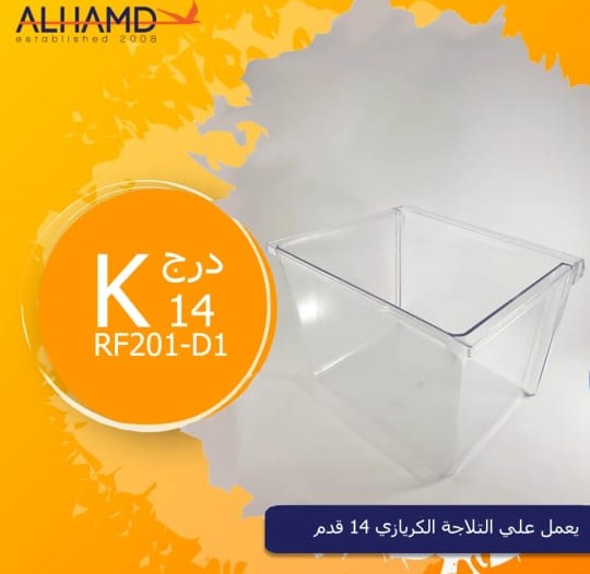 الدرج الشفاف في ثلاجة كريازي 14 قدم نوفروست مصنوع من مادة بلاستيكية شفافة عالية الجودة، غالبًا البولي كربونات، اللي بيتميز بالمتانة والشفافية في نفس الوقت. خليني أشرح لك شوية تفاصيل عن الدرج الشفاف: